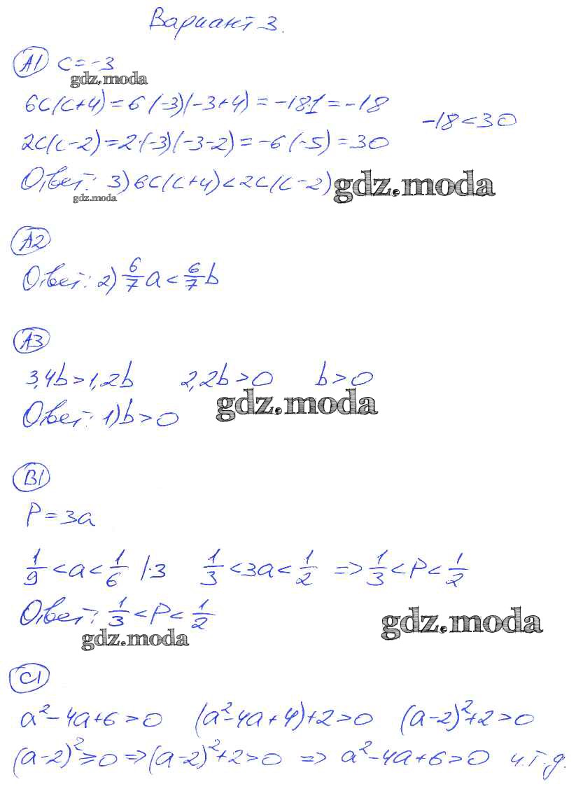ГДЗ решение к заданию № 3 Алгебра 8 класс самостоятельные и контрольные работы Глазков Ю.А. (к уч. Макарычева) Экзамен 2012 ФГОС бесплатно на гдз.мода!