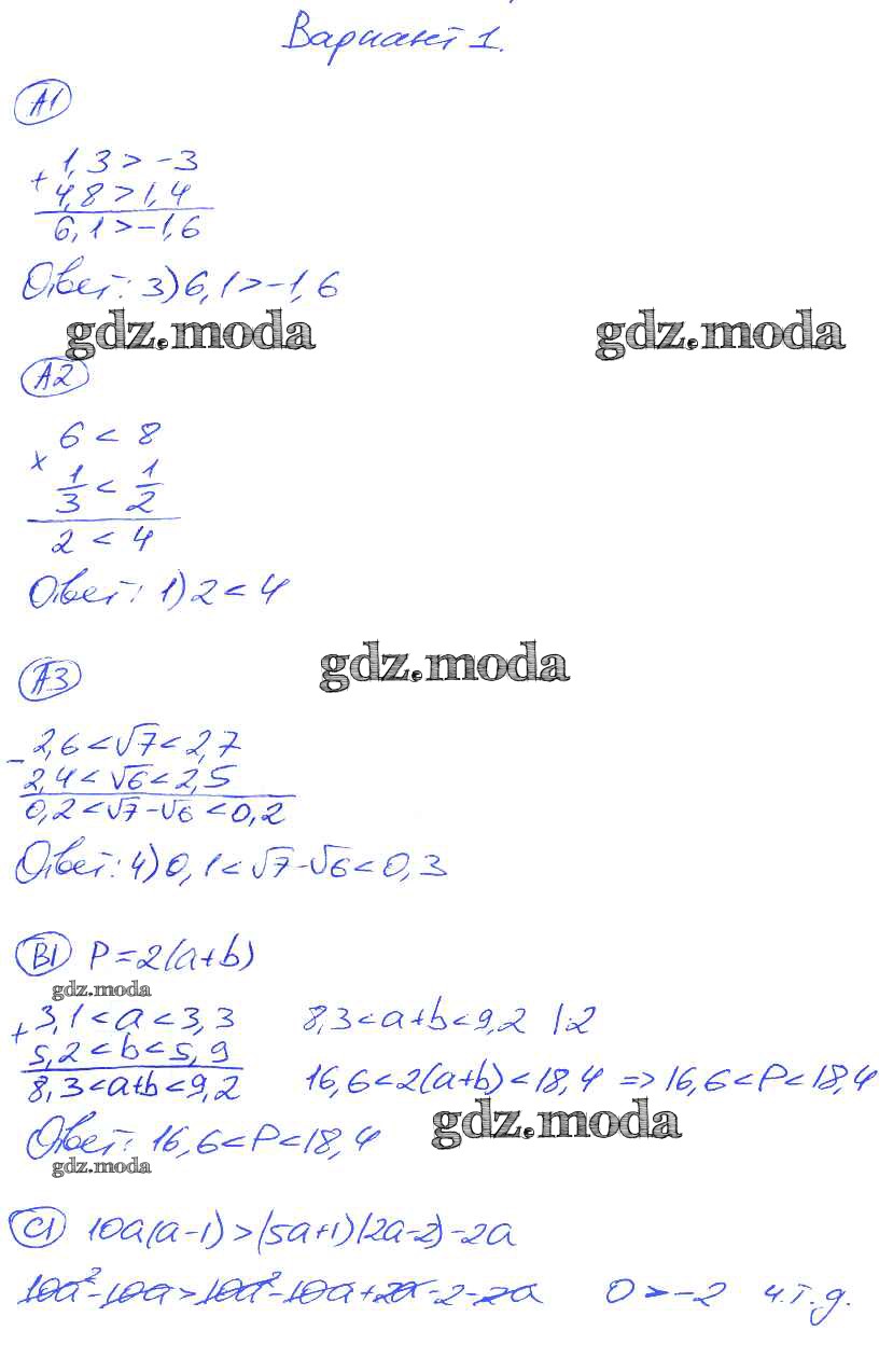 ОТВЕТ на задание № 1 Самостоятельные и контрольные работы по Алгебре 8 класс Глазков УМК