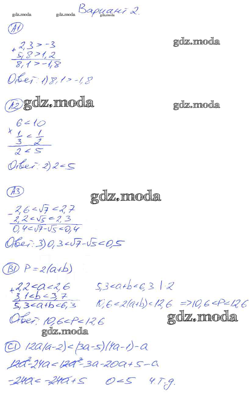 ОТВЕТ на задание № 2 Самостоятельные и контрольные работы по Алгебре 8 класс Глазков УМК