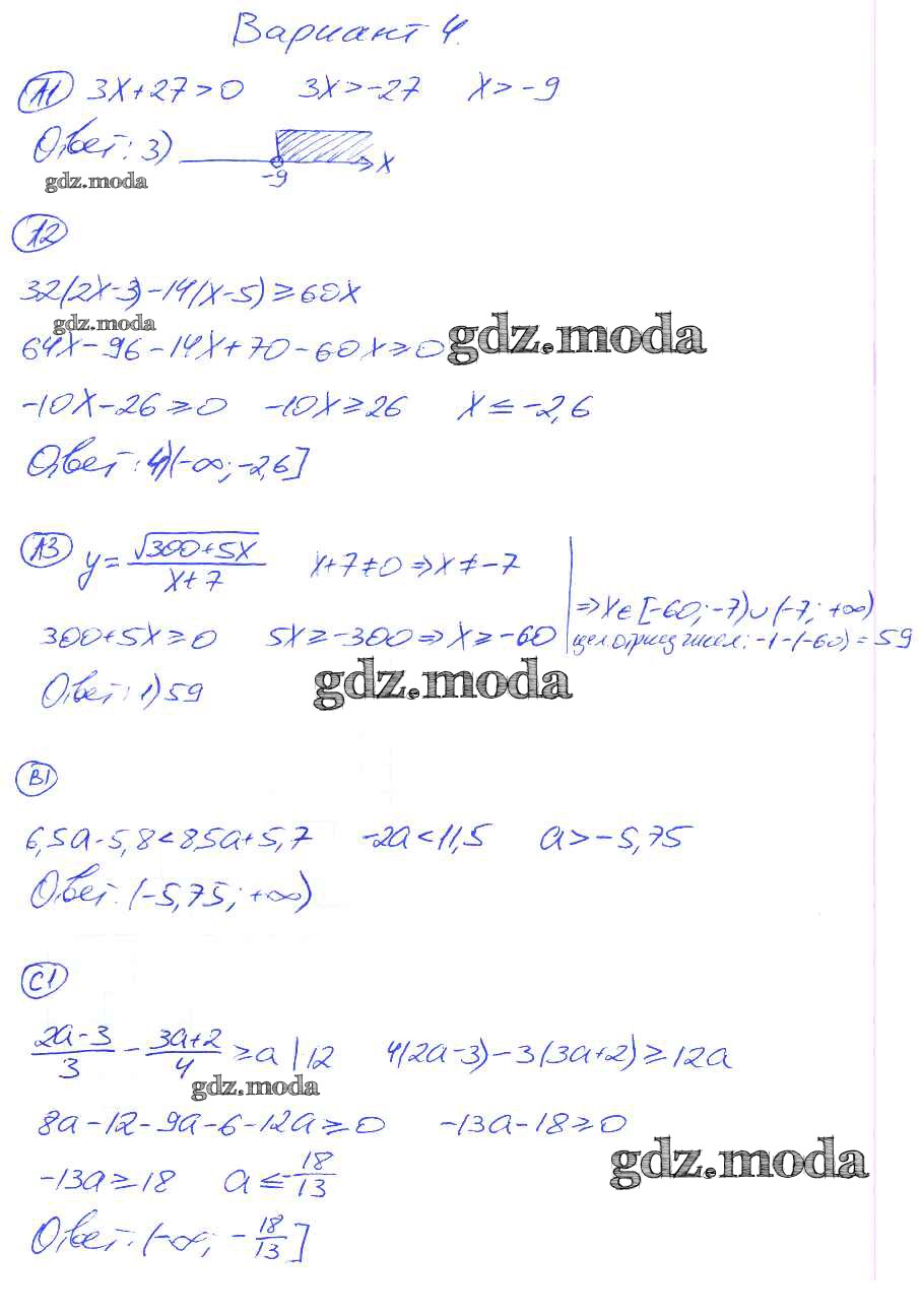 ГДЗ решение к заданию № 4 Алгебра 8 класс самостоятельные и контрольные работы Глазков Ю.А. (к уч. Макарычева) Экзамен 2012 ФГОС бесплатно на гдз.мода!