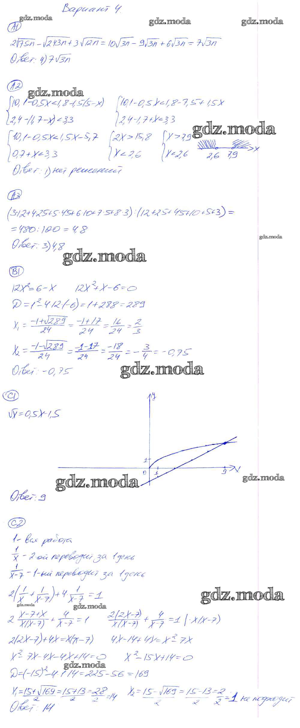 ГДЗ решение к заданию № 4 Алгебра 8 класс самостоятельные и контрольные работы Глазков Ю.А. (к уч. Макарычева) Экзамен 2012 ФГОС бесплатно на гдз.мода!