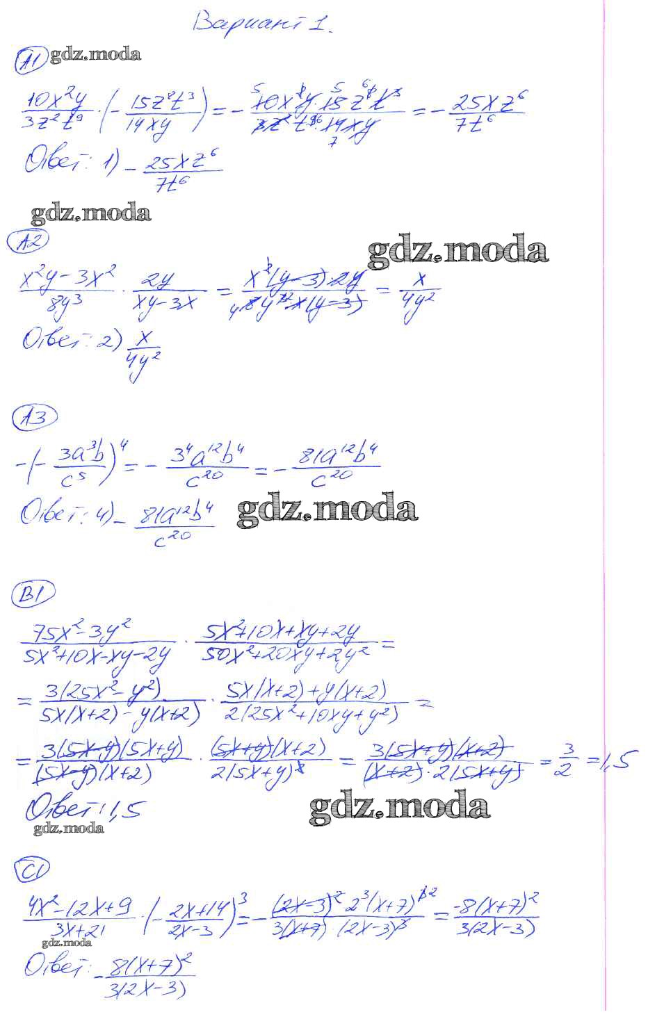 ГДЗ решение к заданию № 1 Алгебра 8 класс самостоятельные и контрольные работы Глазков Ю.А. (к уч. Макарычева) Экзамен 2012 ФГОС бесплатно на гдз.мода!