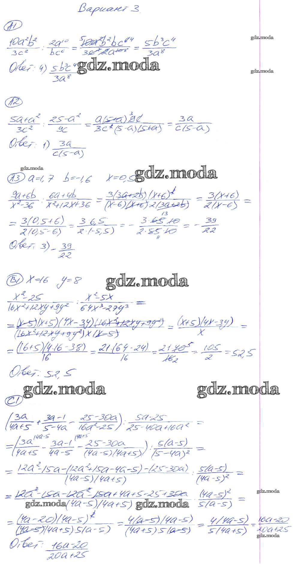 ГДЗ решение к заданию № 3 Алгебра 8 класс самостоятельные и контрольные работы Глазков Ю.А. (к уч. Макарычева) Экзамен 2012 ФГОС бесплатно на гдз.мода!