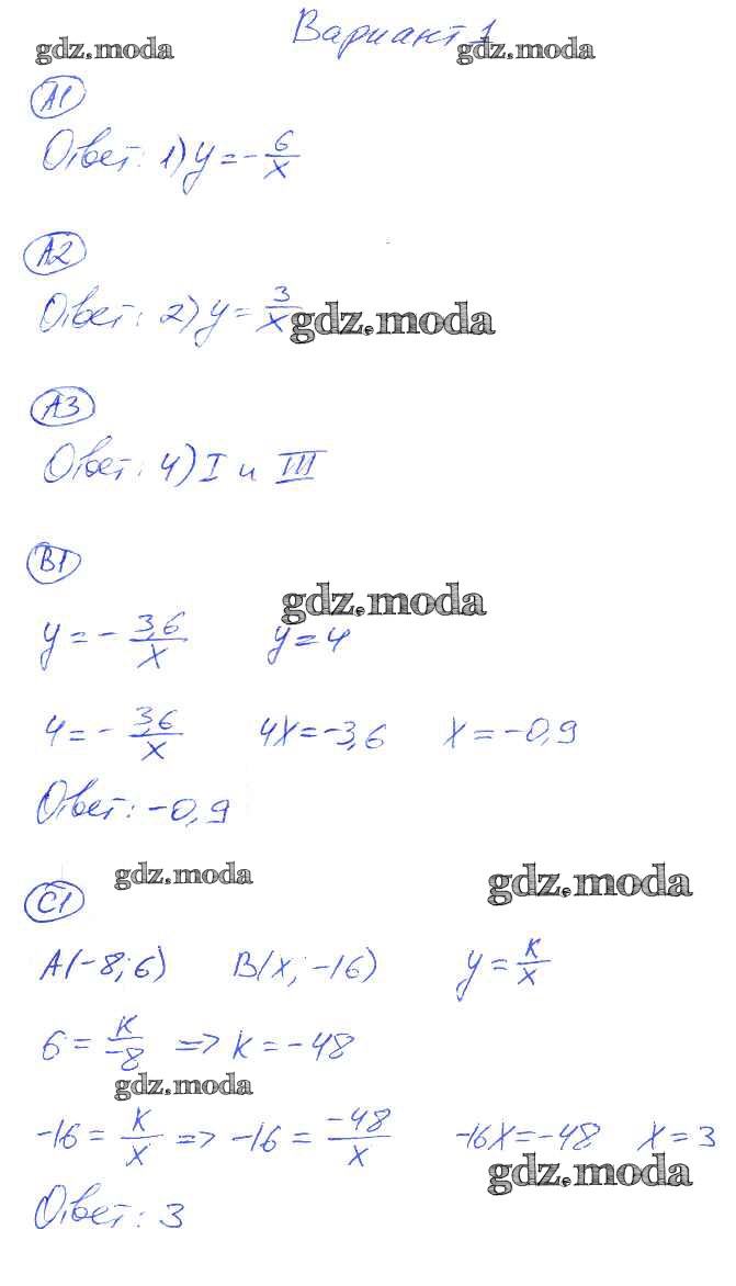 ОТВЕТ на задание № 1 Самостоятельные и контрольные работы по Алгебре 8 класс Глазков УМК