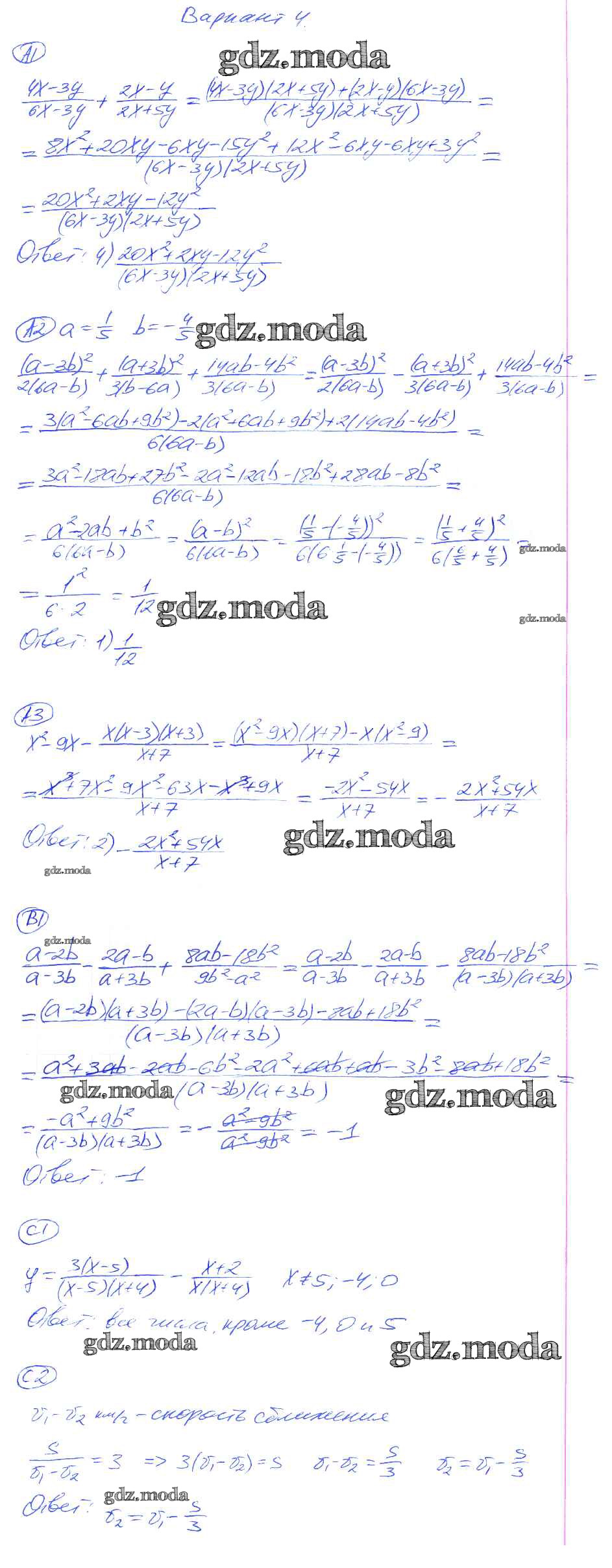ГДЗ решение к заданию № 4 Алгебра 8 класс самостоятельные и контрольные работы Глазков Ю.А. (к уч. Макарычева) Экзамен 2012 ФГОС бесплатно на гдз.мода!