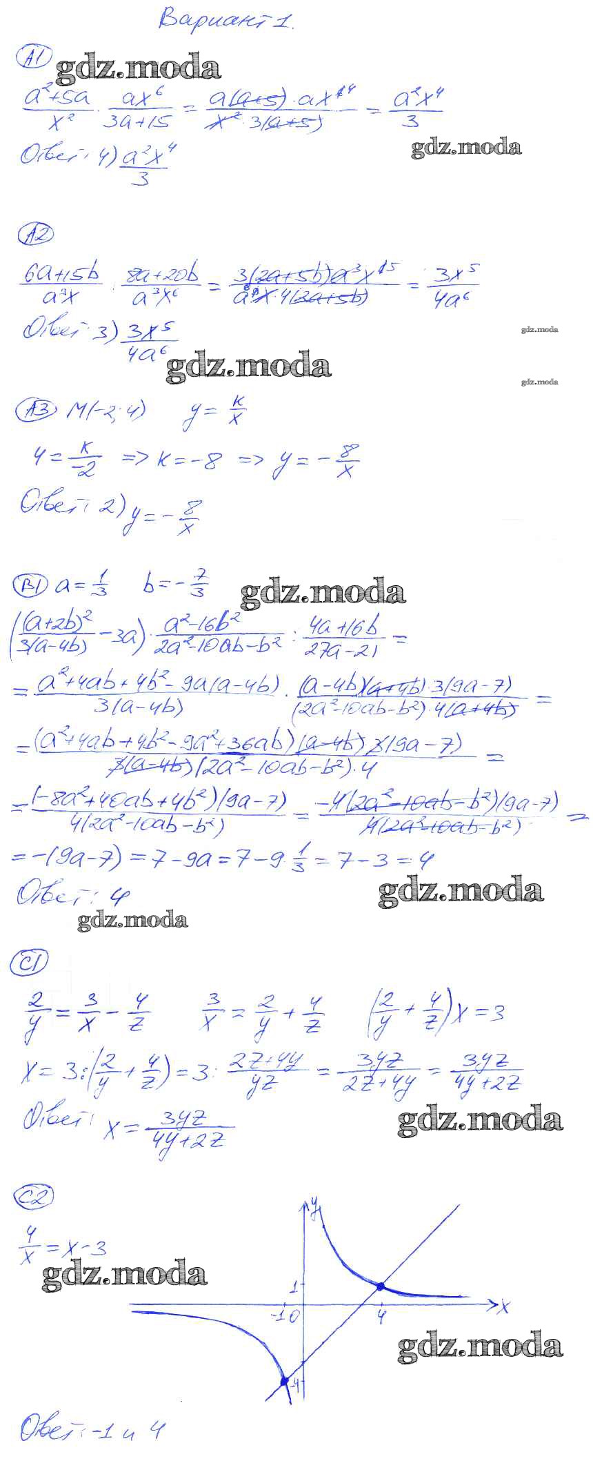 ГДЗ решение к заданию № 1 Алгебра 8 класс самостоятельные и контрольные работы Глазков Ю.А. (к уч. Макарычева) Экзамен 2012 ФГОС бесплатно на гдз.мода!