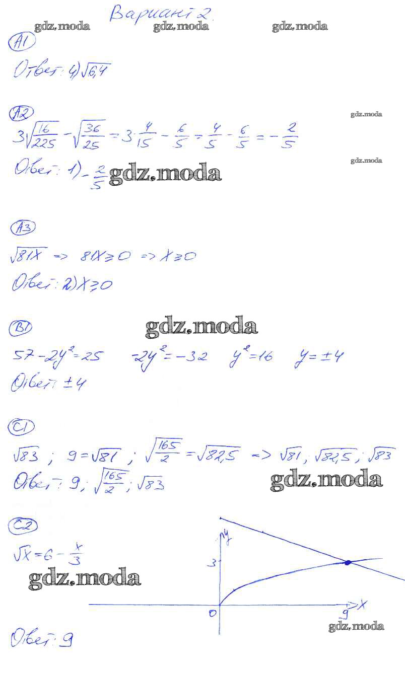 ОТВЕТ на задание № 2 Самостоятельные и контрольные работы по Алгебре 8 класс Глазков УМК