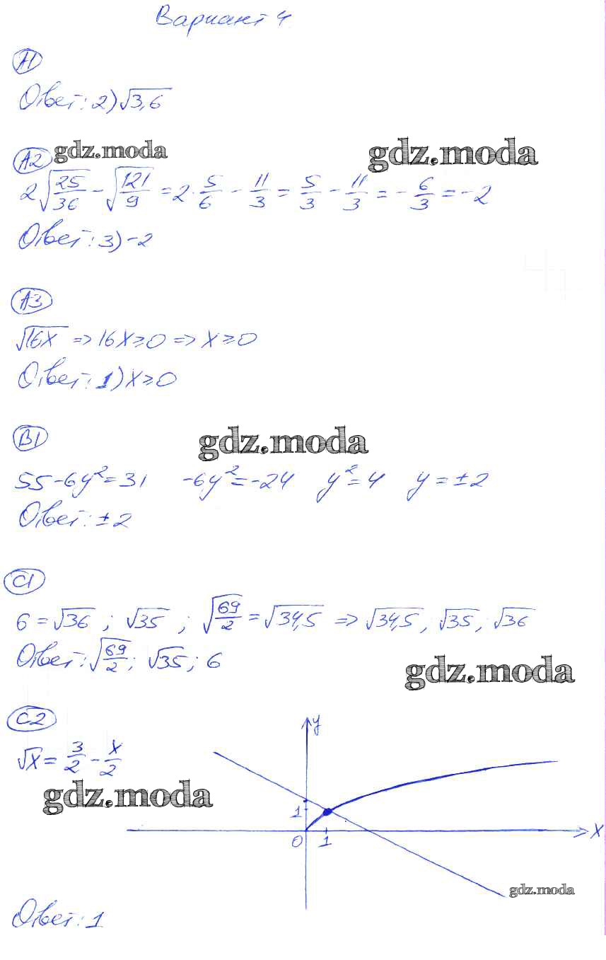 ГДЗ решение к заданию № 4 Алгебра 8 класс самостоятельные и контрольные работы Глазков Ю.А. (к уч. Макарычева) Экзамен 2012 ФГОС бесплатно на гдз.мода!