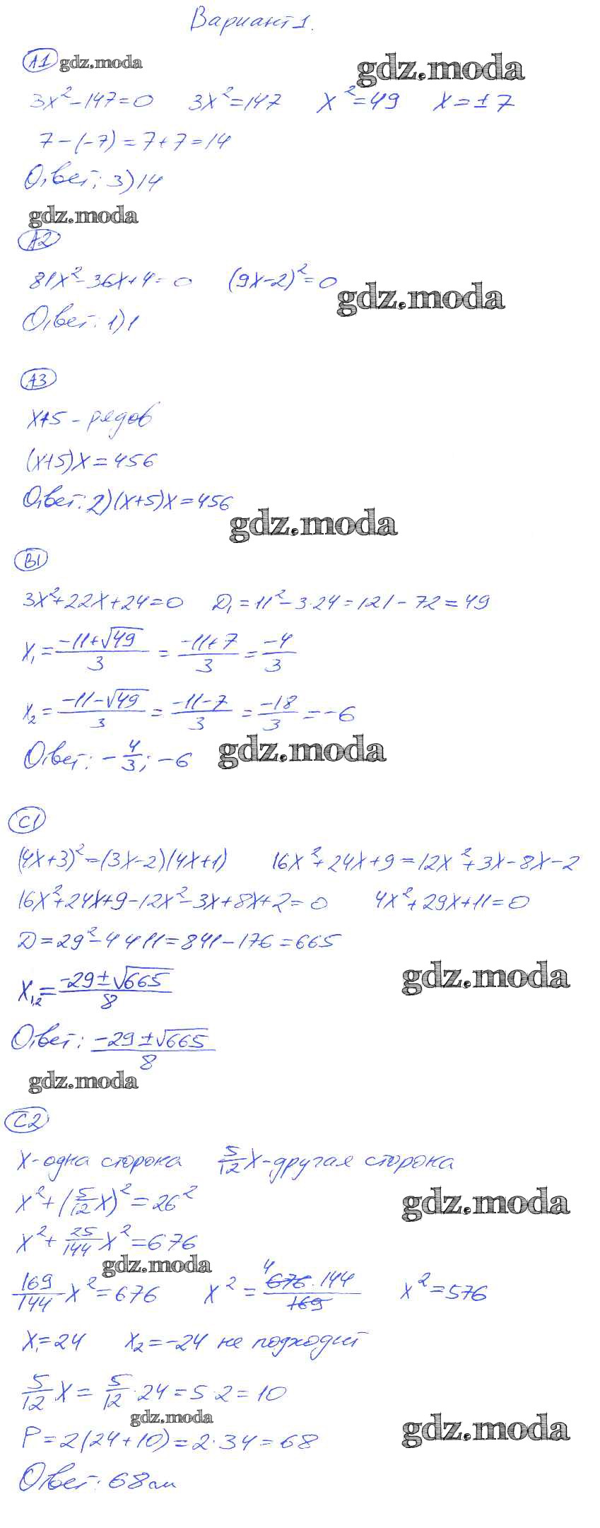 ГДЗ решение к заданию № 1 Алгебра 8 класс самостоятельные и контрольные работы Глазков Ю.А. (к уч. Макарычева) Экзамен 2012 ФГОС бесплатно на гдз.мода!