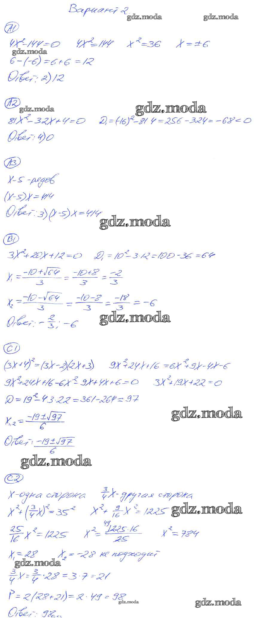 ГДЗ решение к заданию № 2 Алгебра 8 класс самостоятельные и контрольные работы Глазков Ю.А. (к уч. Макарычева) Экзамен 2012 ФГОС бесплатно на гдз.мода!