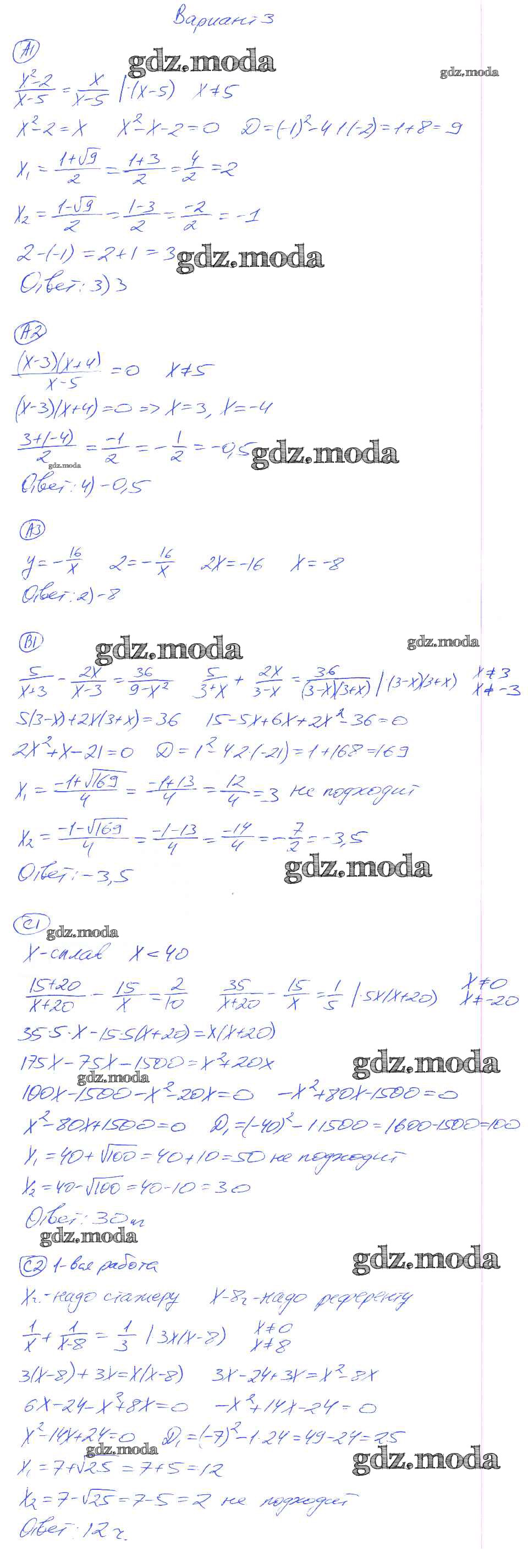 ГДЗ решение к заданию № 3 Алгебра 8 класс самостоятельные и контрольные работы Глазков Ю.А. (к уч. Макарычева) Экзамен 2012 ФГОС бесплатно на гдз.мода!