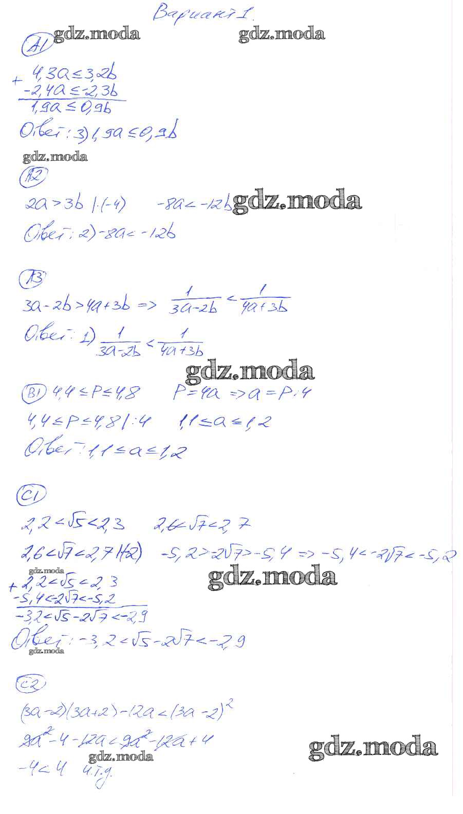 ГДЗ решение к заданию № 1 Алгебра 8 класс самостоятельные и контрольные работы Глазков Ю.А. (к уч. Макарычева) Экзамен 2012 ФГОС бесплатно на гдз.мода!