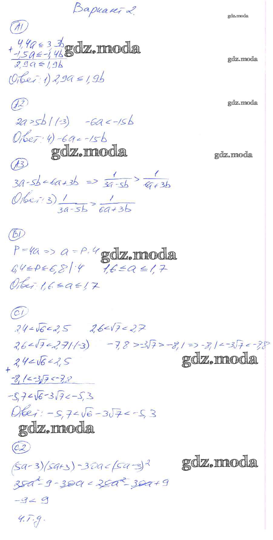 ОТВЕТ на задание № 2 Самостоятельные и контрольные работы по Алгебре 8 класс Глазков УМК