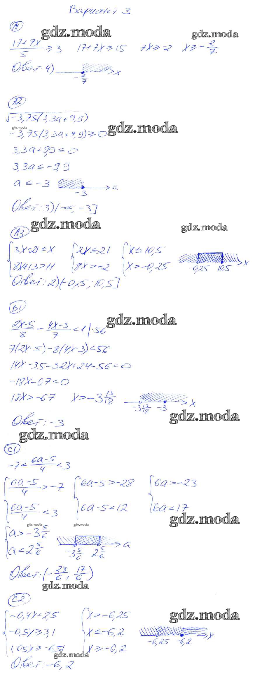 ГДЗ решение к заданию № 3 Алгебра 8 класс самостоятельные и контрольные работы Глазков Ю.А. (к уч. Макарычева) Экзамен 2012 ФГОС бесплатно на гдз.мода!