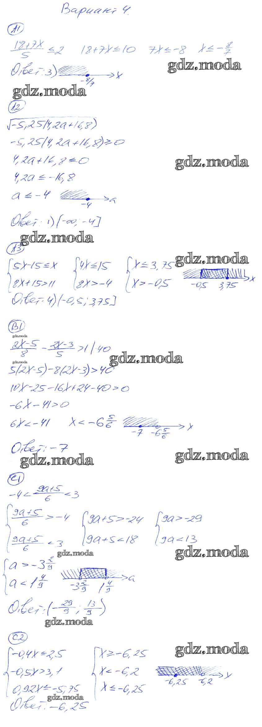 ГДЗ решение к заданию № 4 Алгебра 8 класс самостоятельные и контрольные работы Глазков Ю.А. (к уч. Макарычева) Экзамен 2012 ФГОС бесплатно на гдз.мода!