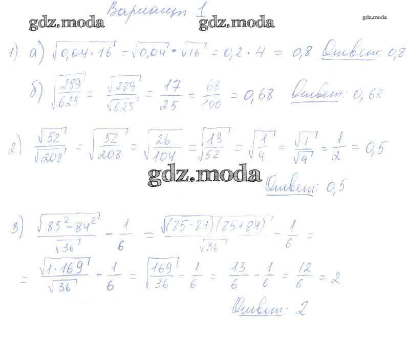 ГДЗ решение к заданию № 1 Алгебра 8 класс контрольные и самостоятельные работы Попов М.А. (к уч. Мордковича А.Г.) Экзамен 2016 ФГОС бесплатно на гдз.мода!