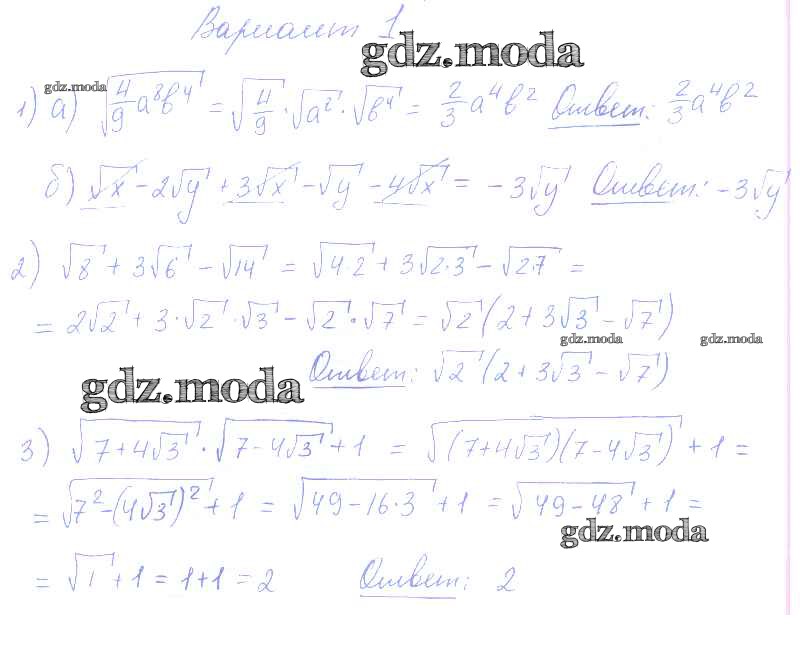 ГДЗ решение к заданию № 1 Алгебра 8 класс контрольные и самостоятельные работы Попов М.А. (к уч. Мордковича А.Г.) Экзамен 2016 ФГОС бесплатно на гдз.мода!