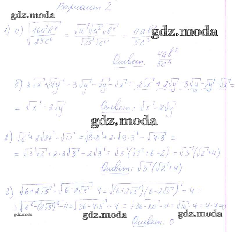 ГДЗ решение к заданию № 2 Алгебра 8 класс контрольные и самостоятельные работы Попов М.А. (к уч. Мордковича А.Г.) Экзамен 2016 ФГОС бесплатно на гдз.мода!
