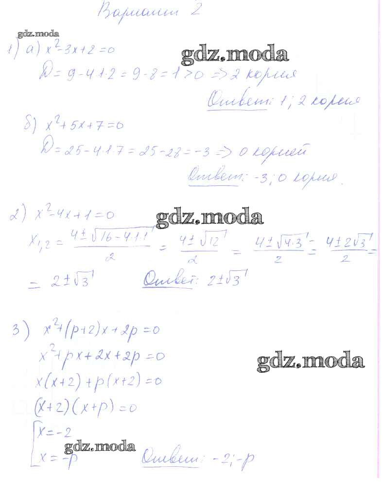 ОТВЕТ на задание № 2 Контрольные и самостоятельные работы по Алгебре 8 класс Попов УМК