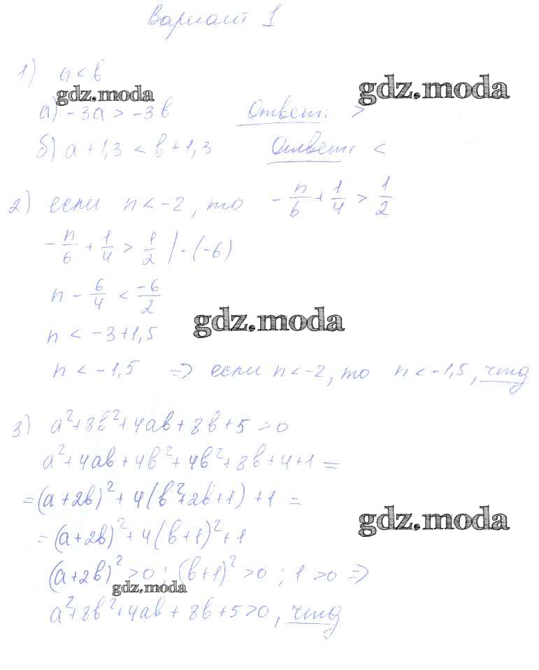 ОТВЕТ на задание № 1 Контрольные и самостоятельные работы по Алгебре 8 класс Попов УМК