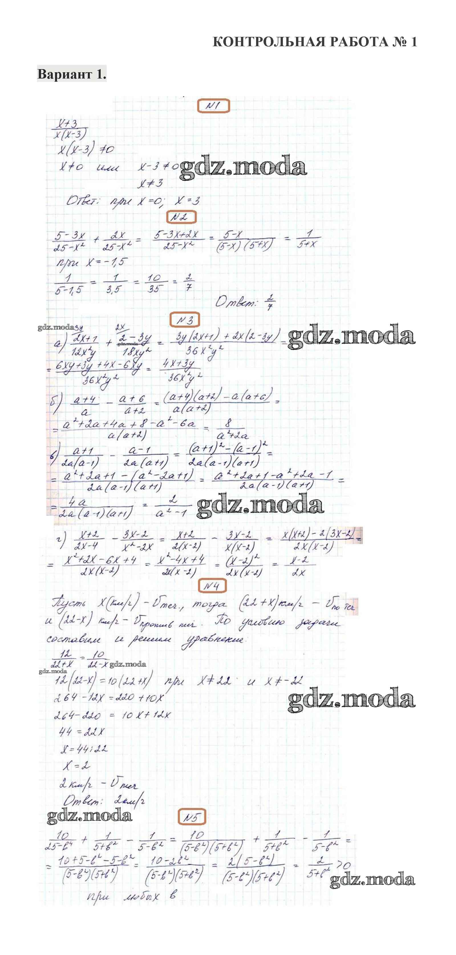 ОТВЕТ на задание № 1 Контрольные работы по Алгебре 8 класс Александрова УМК Базовый уровень