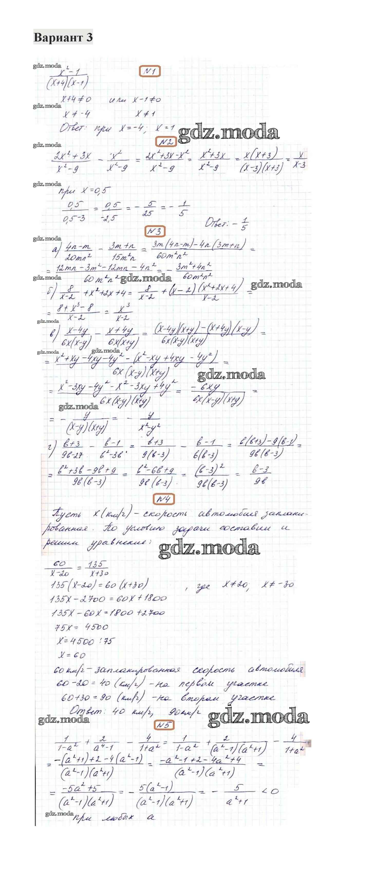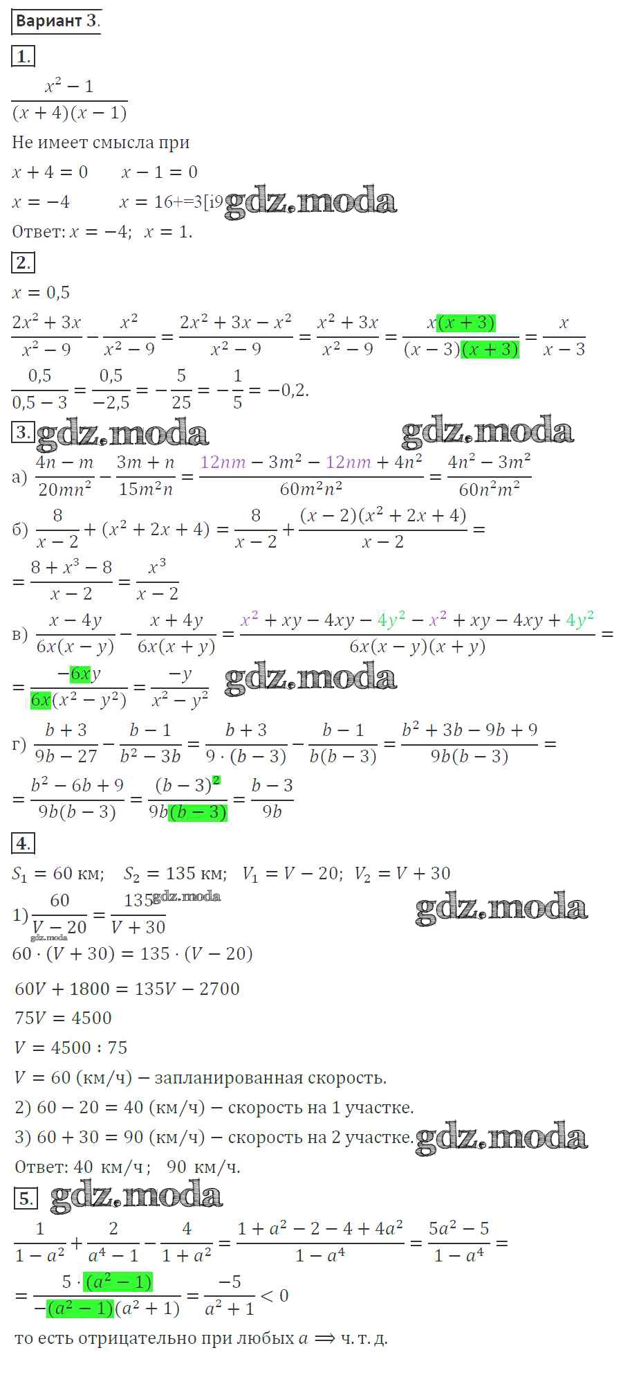 ОТВЕТ на задание № 3 Контрольные работы по Алгебре 8 класс Александрова УМК Базовый уровень