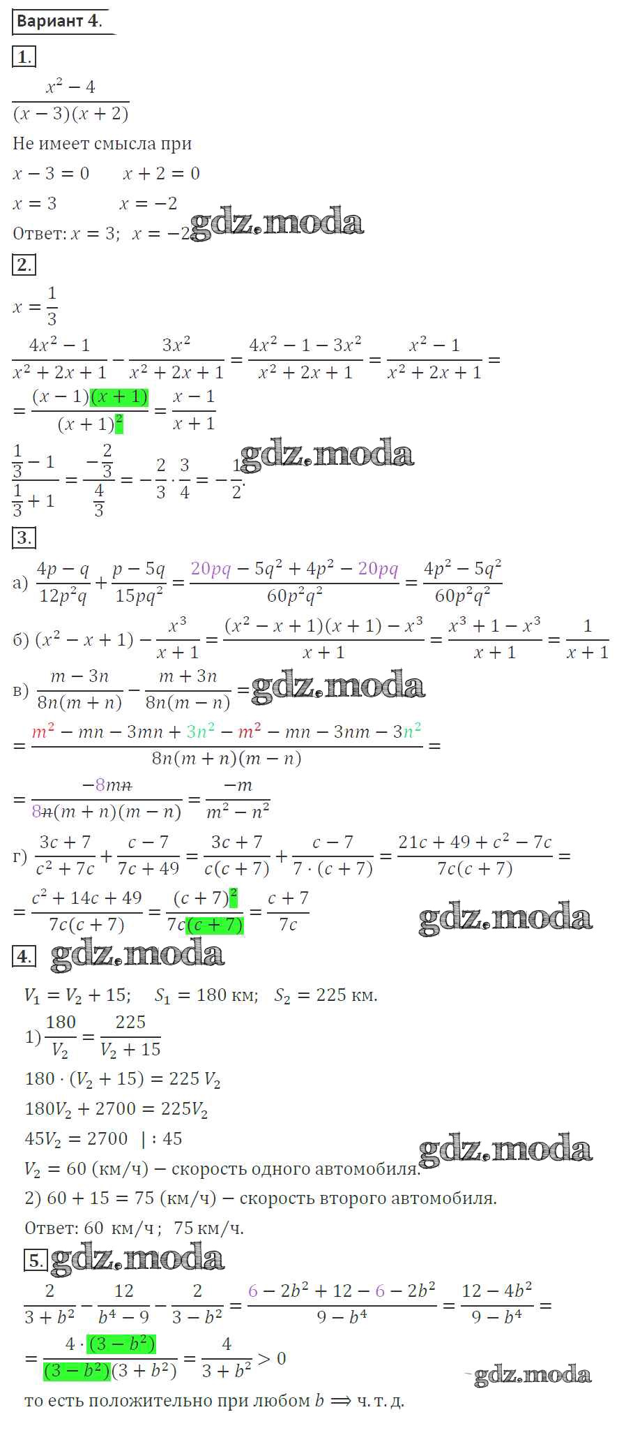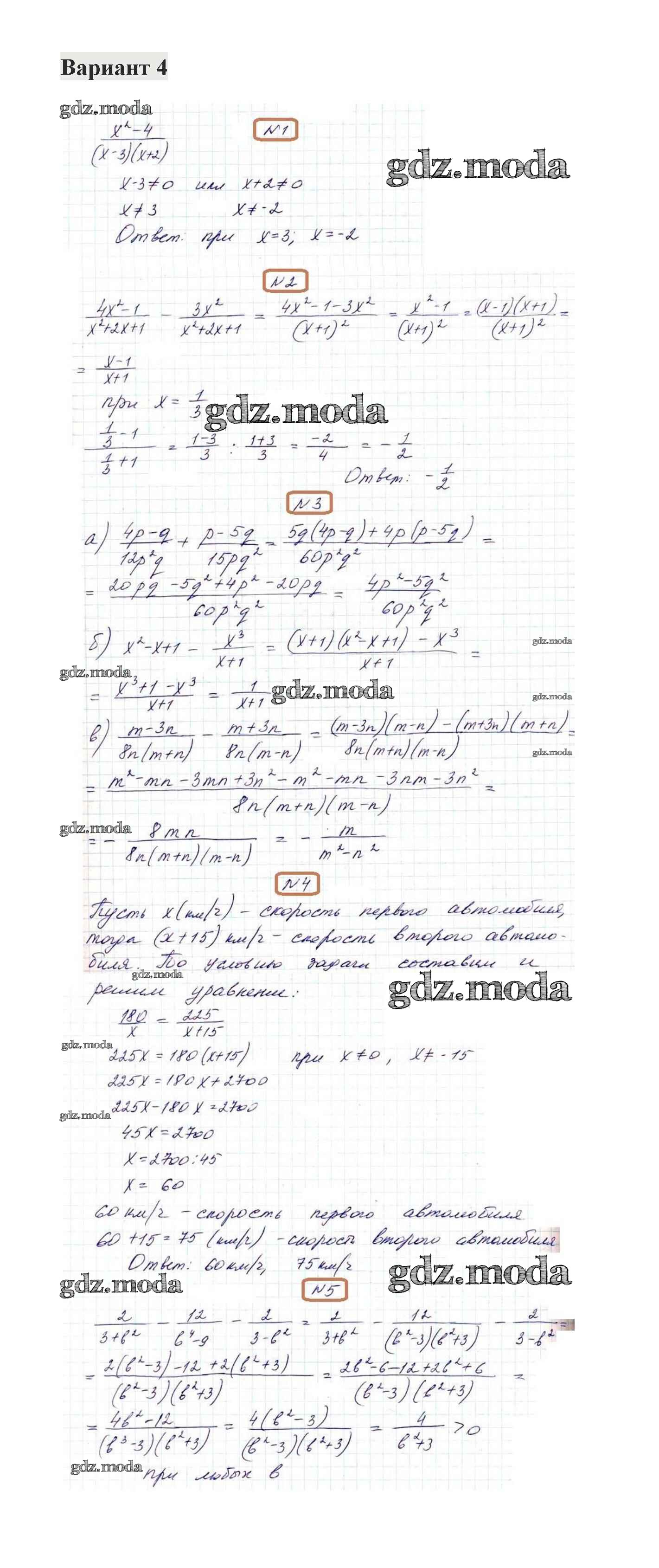 ОТВЕТ на задание № 4 Контрольные работы по Алгебре 8 класс Александрова УМК Базовый уровень
