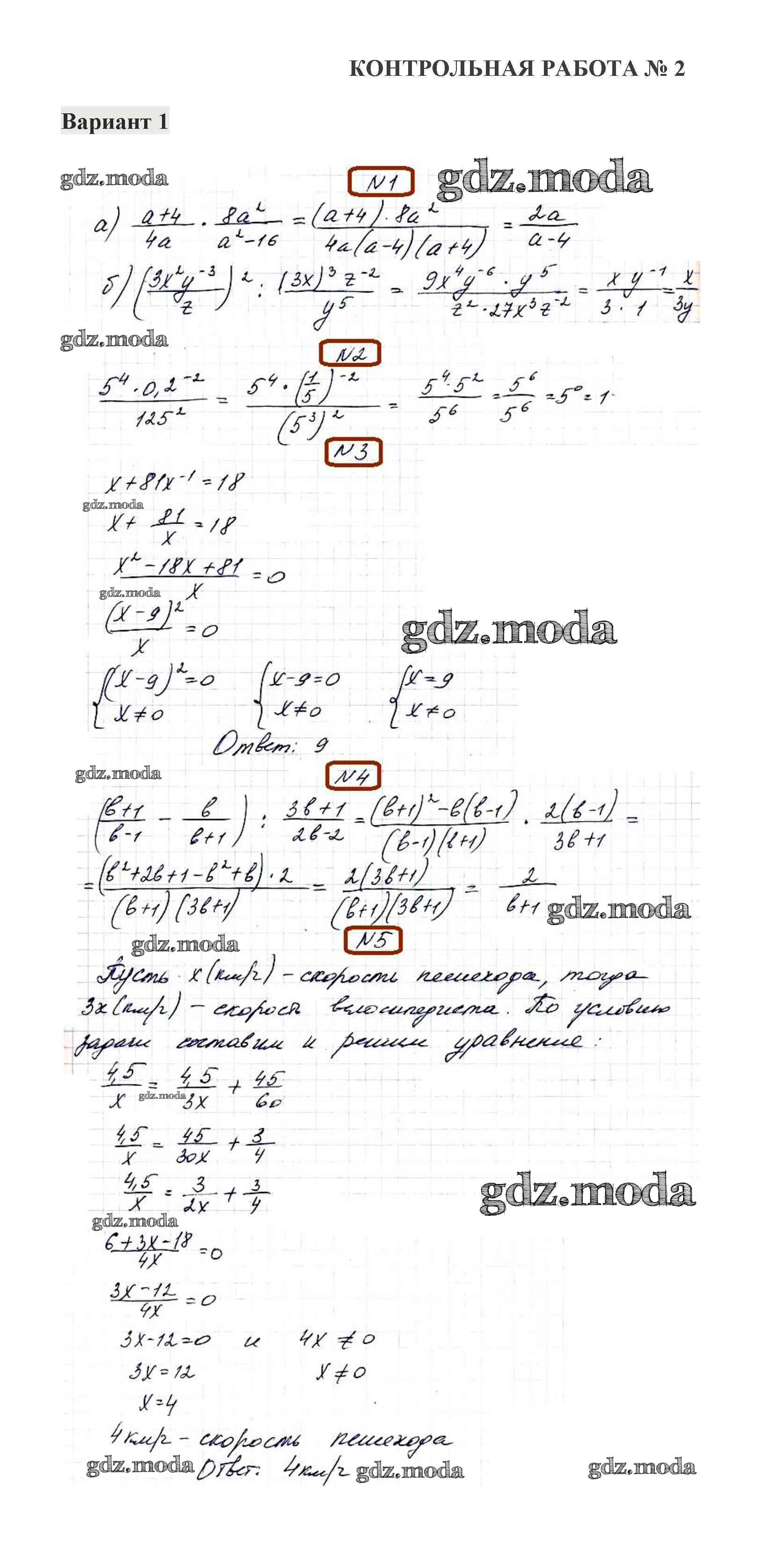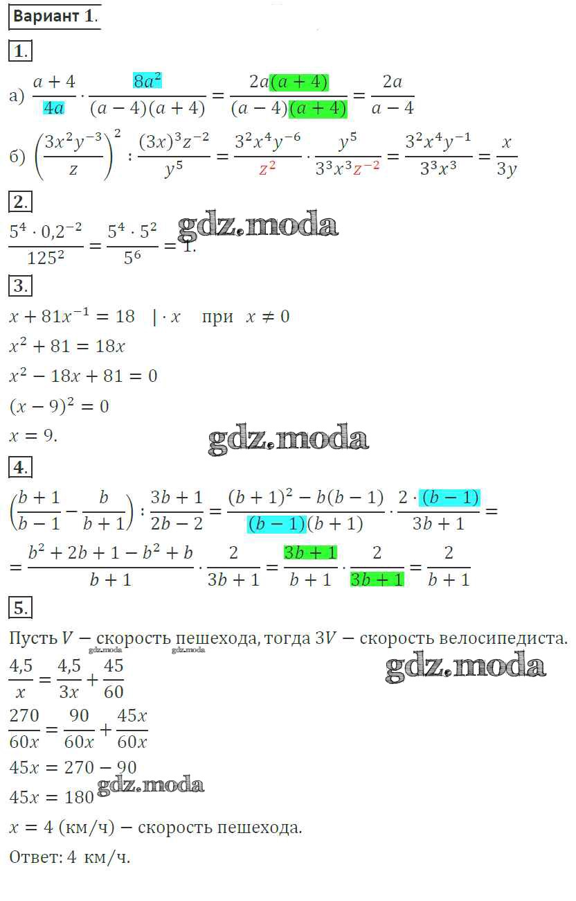 ОТВЕТ на задание № 1 Контрольные работы по Алгебре 8 класс Александрова УМК Базовый уровень