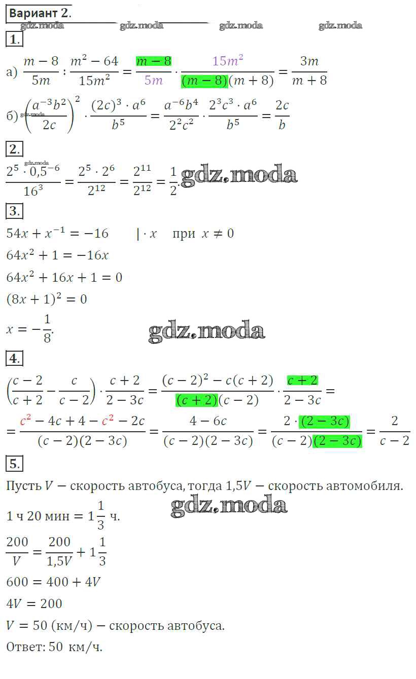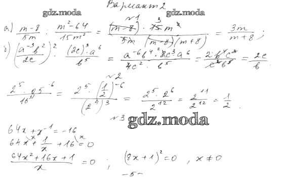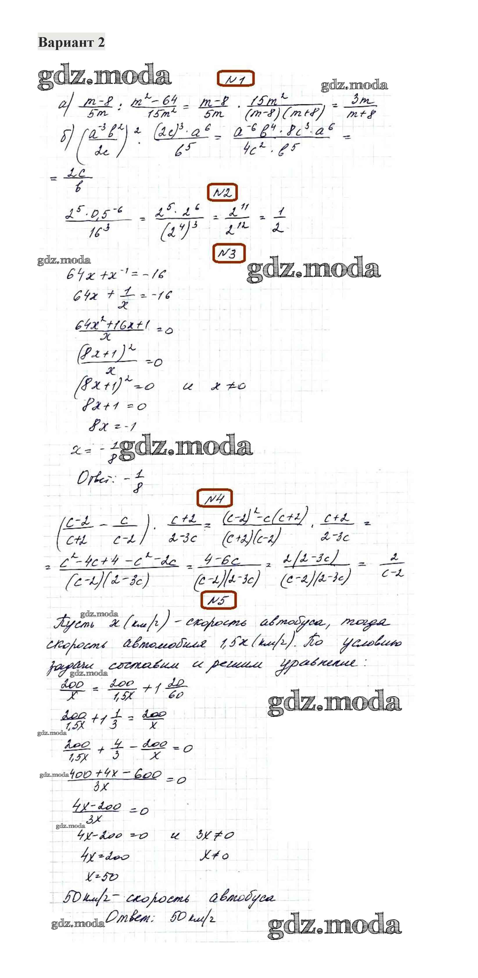 ОТВЕТ на задание № 2 Контрольные работы по Алгебре 8 класс Александрова УМК Базовый уровень