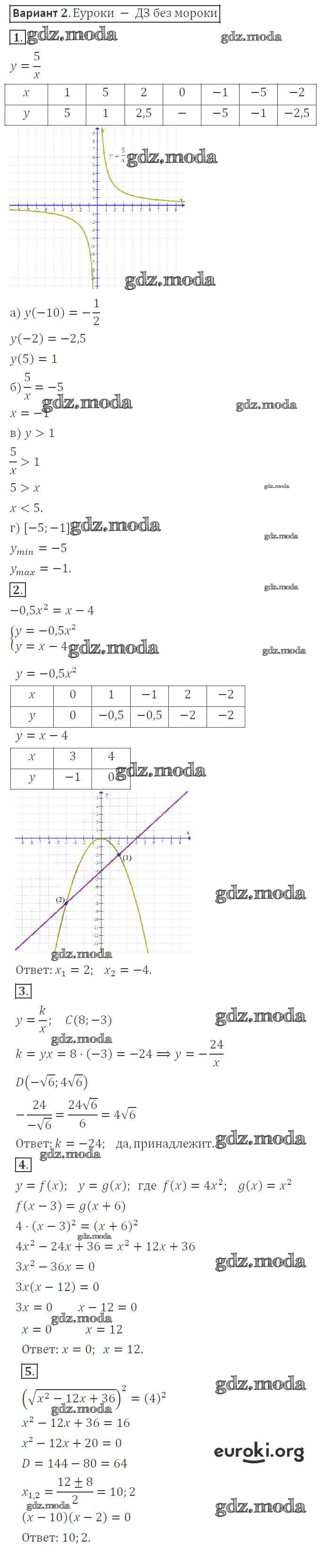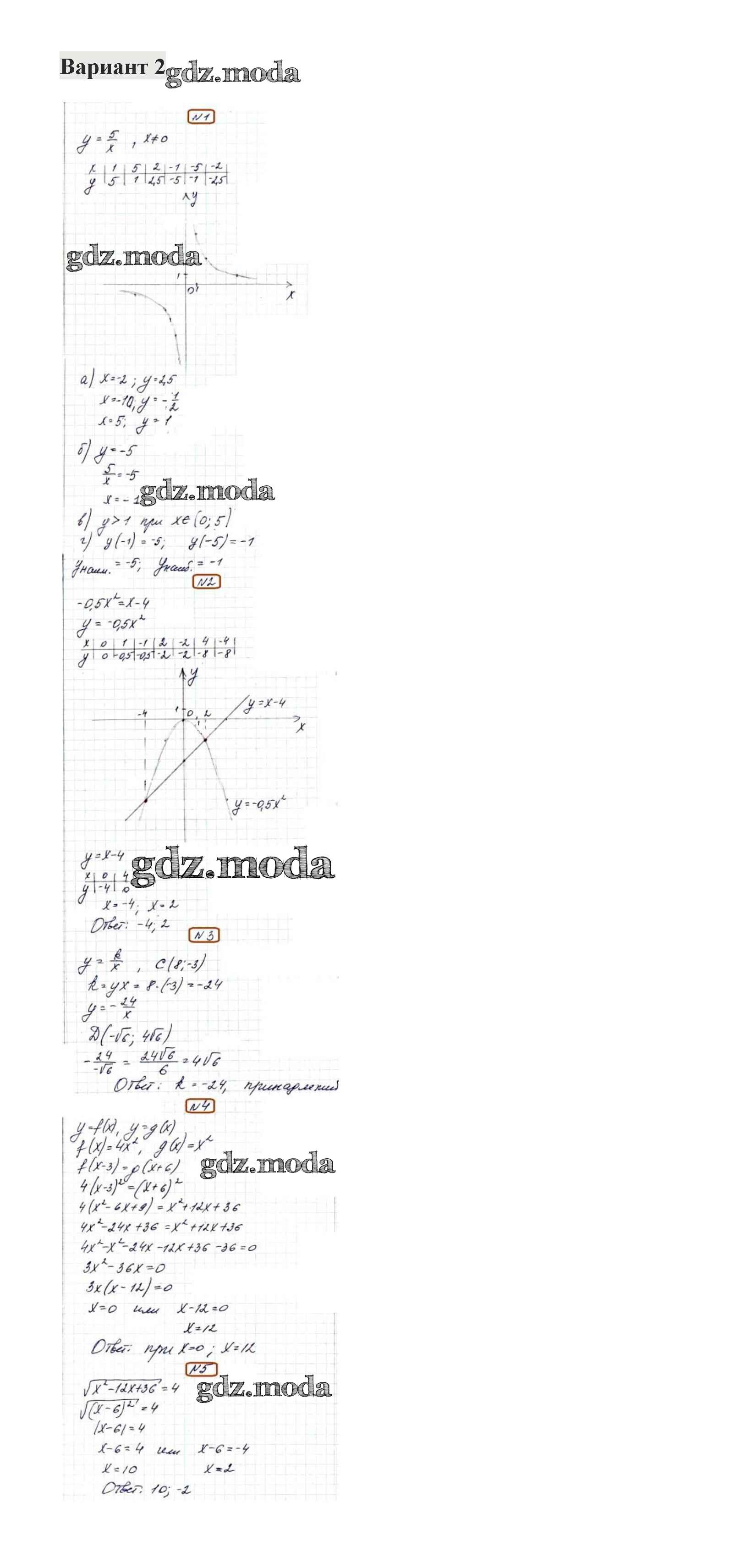 ОТВЕТ на задание № 2 Контрольные работы по Алгебре 8 класс Александрова УМК Базовый уровень