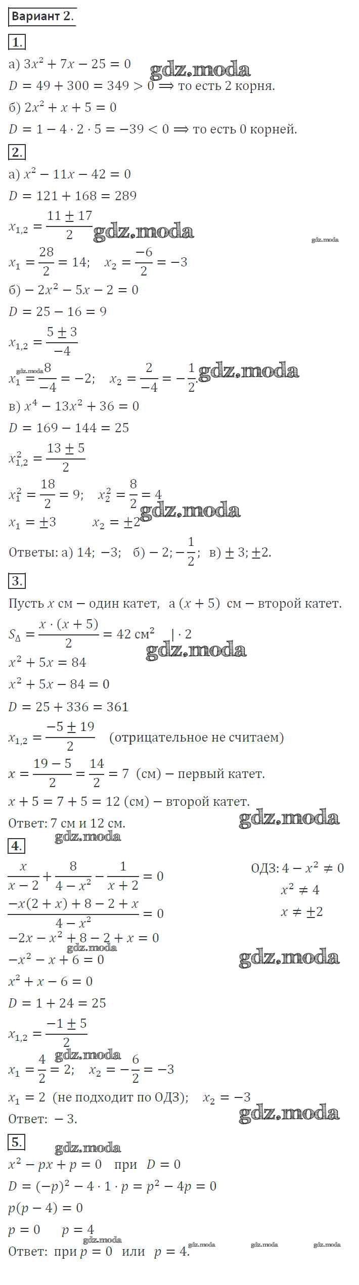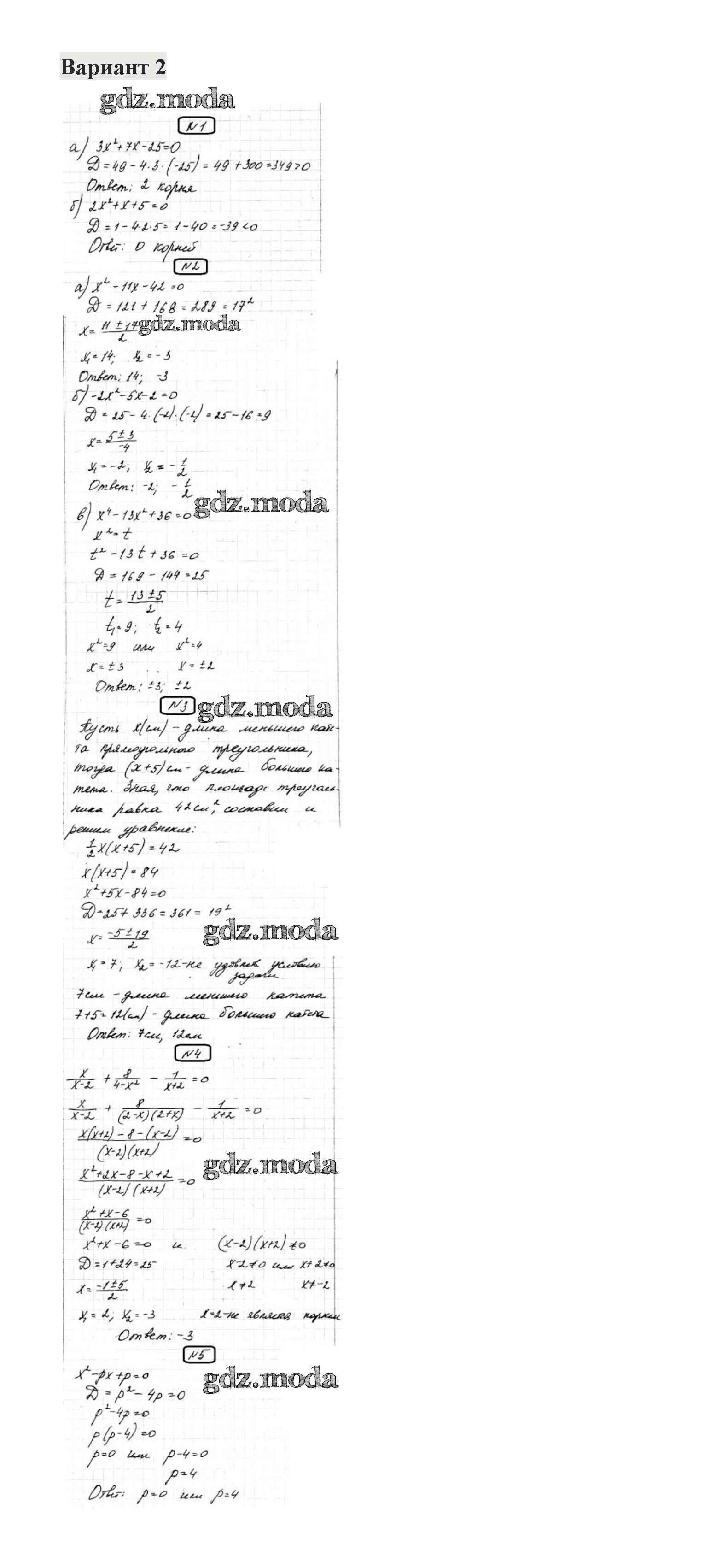 ОТВЕТ на задание № 2 Контрольные работы по Алгебре 8 класс Александрова УМК Базовый уровень