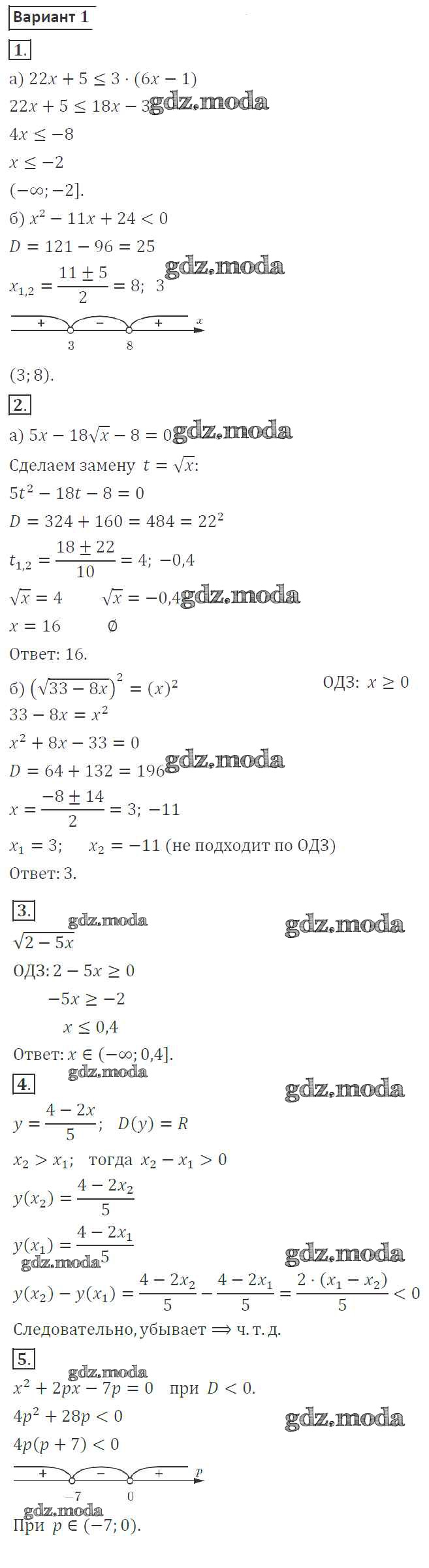 ОТВЕТ на задание № 1 Контрольные работы по Алгебре 8 класс Александрова УМК Базовый уровень