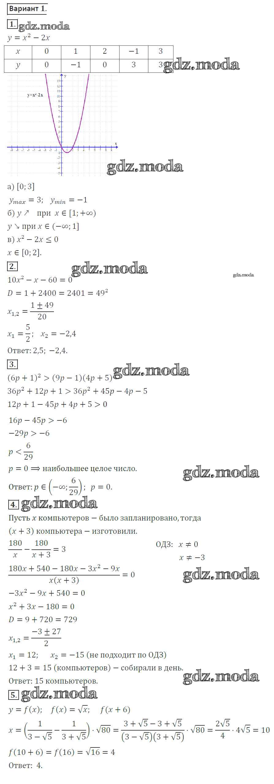 ОТВЕТ на задание № 1 Контрольные работы по Алгебре 8 класс Александрова УМК Базовый уровень
