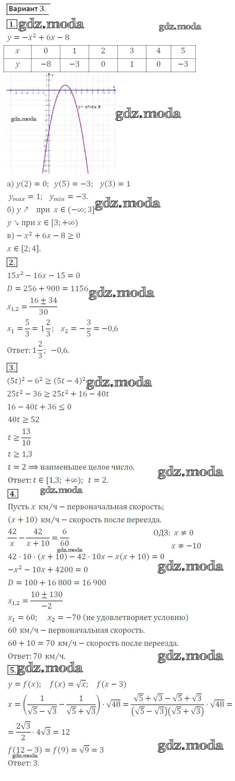 ОТВЕТ на задание № 3 Контрольные работы по Алгебре 8 класс Александрова УМК Базовый уровень