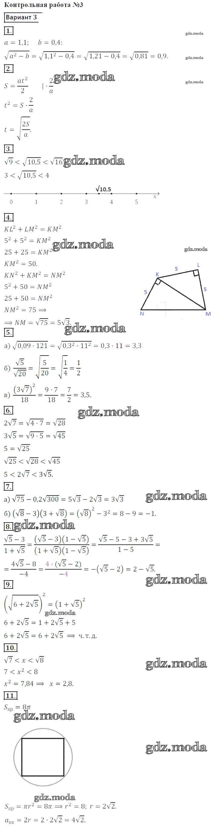 ГДЗ решение к заданию № 3 Алгебра 8 класс контрольные работы Кузнецова Л.В. Просвещение 2016 ФГОС бесплатно на гдз.мода!