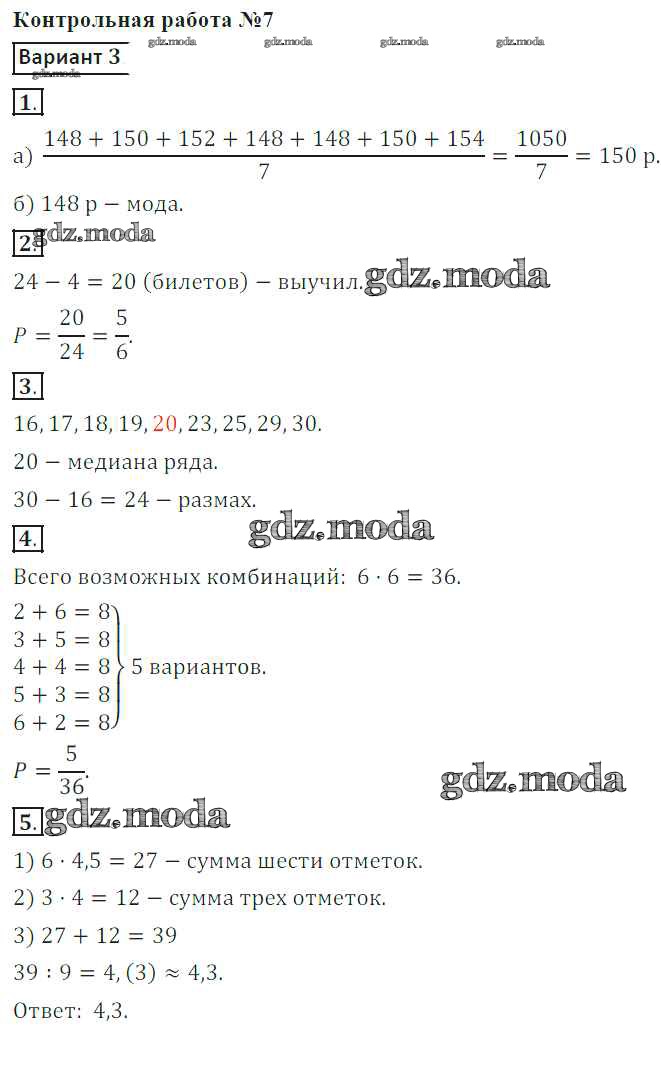 ГДЗ решение к заданию № 3 Алгебра 8 класс контрольные работы Кузнецова Л.В. Просвещение 2016 ФГОС бесплатно на гдз.мода!