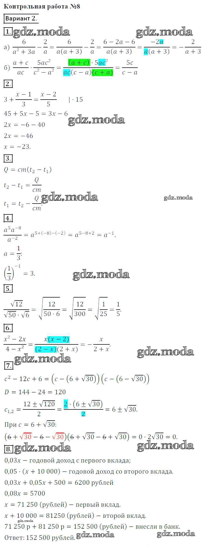 ГДЗ решение к заданию № 2 Алгебра 8 класс контрольные работы Кузнецова Л.В. Просвещение 2016 ФГОС бесплатно на гдз.мода!
