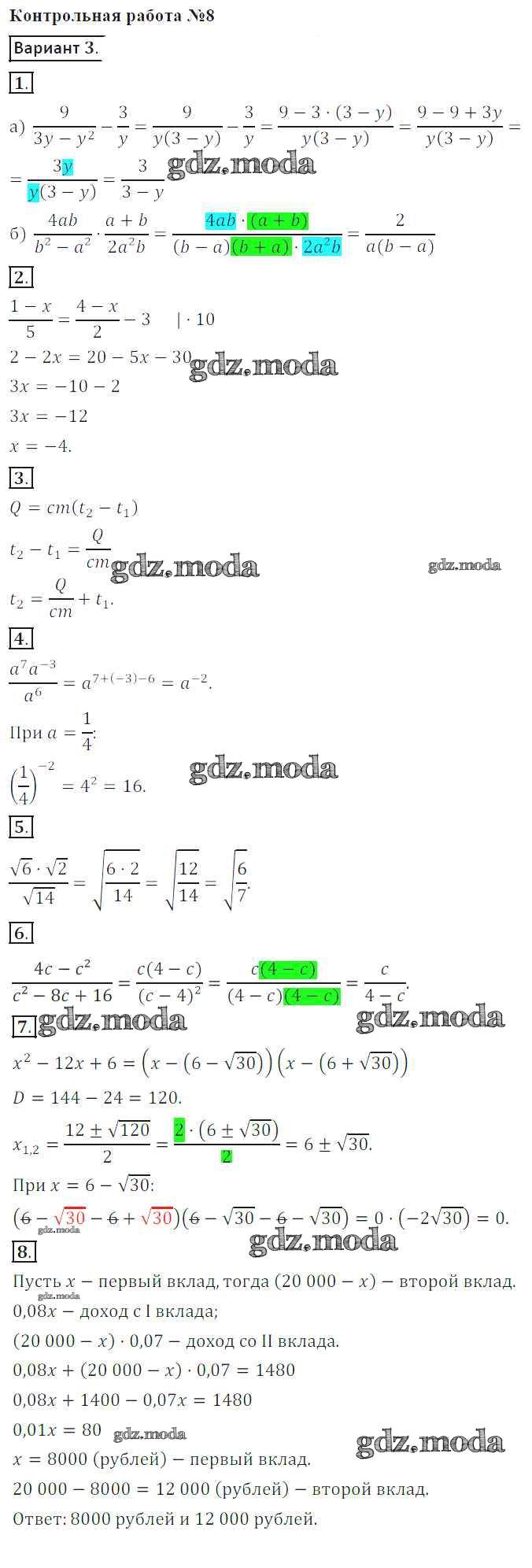 ГДЗ решение к заданию № 3 Алгебра 8 класс контрольные работы Кузнецова Л.В. Просвещение 2016 ФГОС бесплатно на гдз.мода!