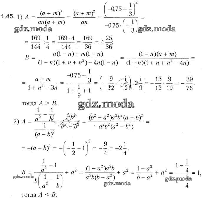 ОТВЕТ на задание № 1.45 Учебник по Алгебре 8 класс Кузнецова