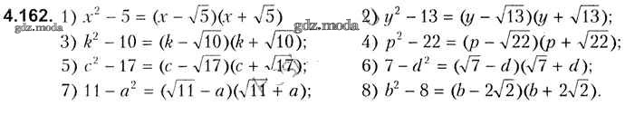 ГДЗ решение к заданию № 4.162 Алгебра 8 класс Кузнецова Е.П. Народная асвета 2015 бесплатно на гдз.мода!