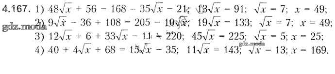 ОТВЕТ на задание № 4.167 Учебник по Алгебре 8 класс Кузнецова