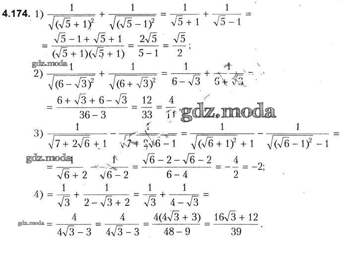 ГДЗ решение к заданию № 4.174 Алгебра 8 класс Кузнецова Е.П. Народная асвета 2015 бесплатно на гдз.мода!