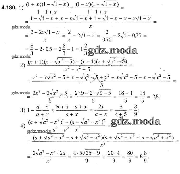 ГДЗ решение к заданию № 4.180 Алгебра 8 класс Кузнецова Е.П. Народная асвета 2015 бесплатно на гдз.мода!