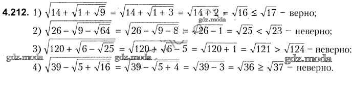 ОТВЕТ на задание № 4.212 Учебник по Алгебре 8 класс Кузнецова