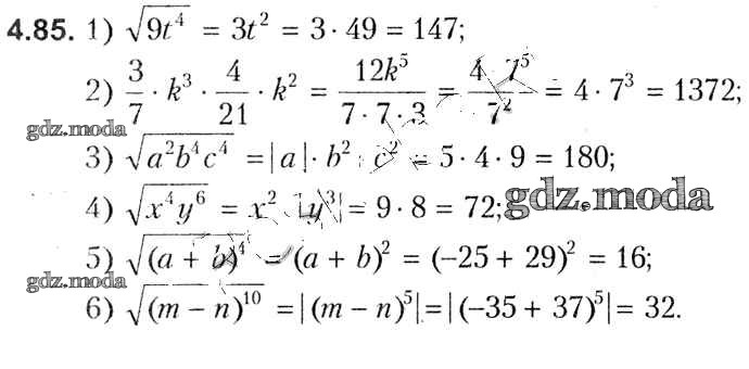 ОТВЕТ на задание № 4.85 Учебник по Алгебре 8 класс Кузнецова