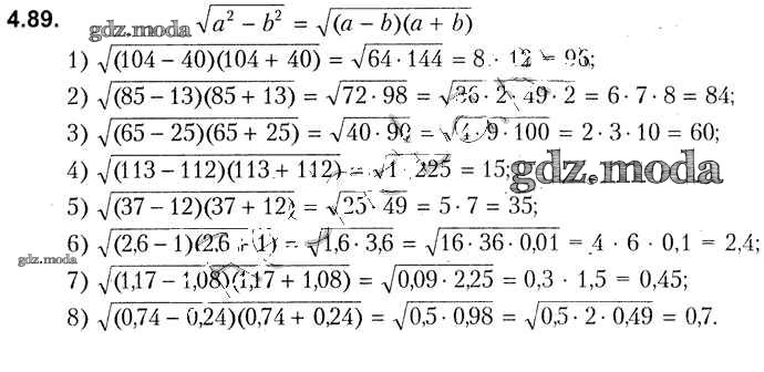 ОТВЕТ на задание № 4.89 Учебник по Алгебре 8 класс Кузнецова