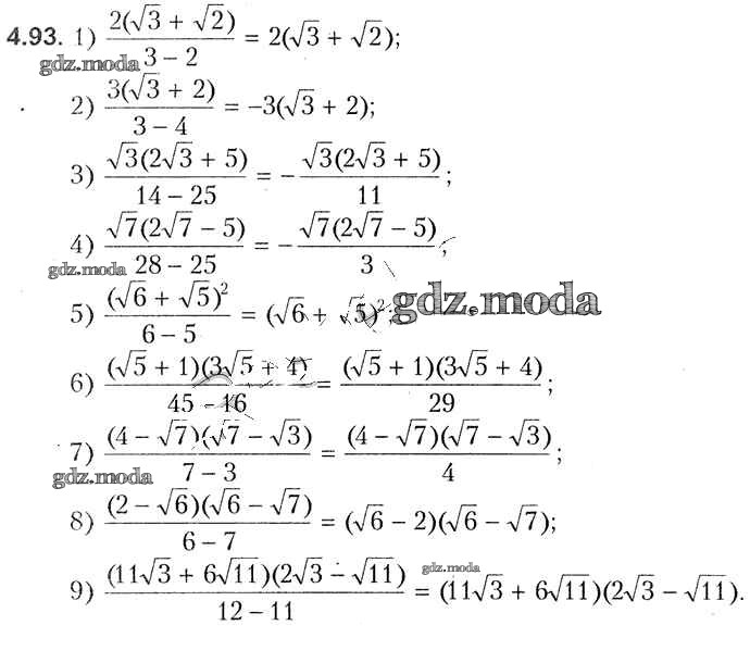 ГДЗ решение к заданию № 4.93 Алгебра 8 класс Кузнецова Е.П. Народная асвета 2015 бесплатно на гдз.мода!