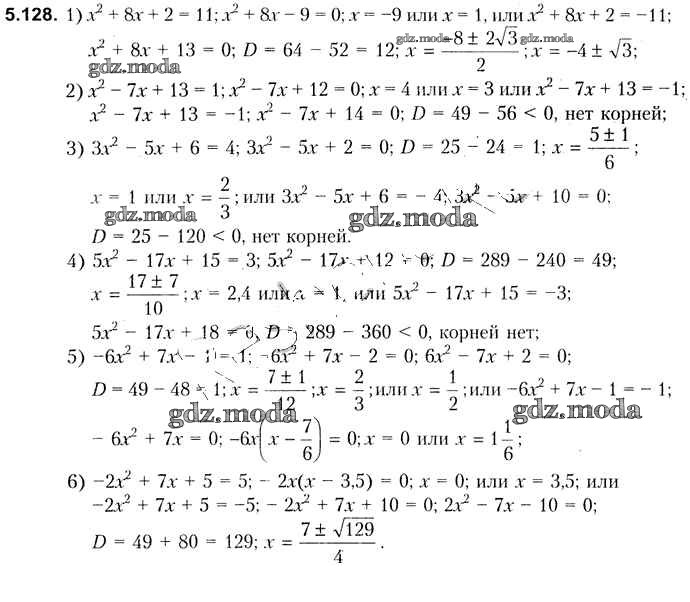 ОТВЕТ на задание № 5.128 Учебник по Алгебре 8 класс Кузнецова