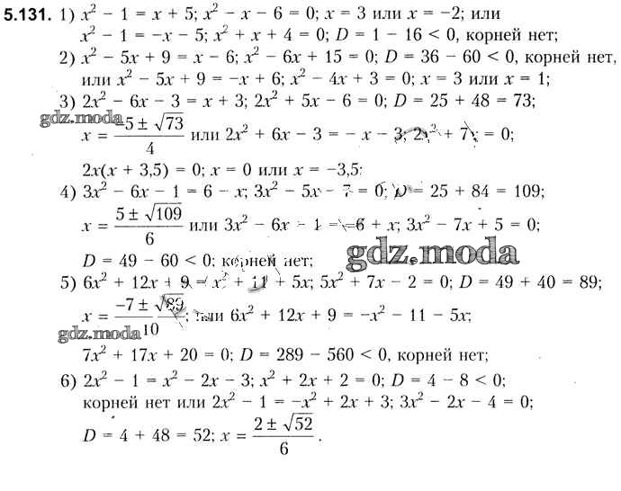 ОТВЕТ на задание № 5.131 Учебник по Алгебре 8 класс Кузнецова
