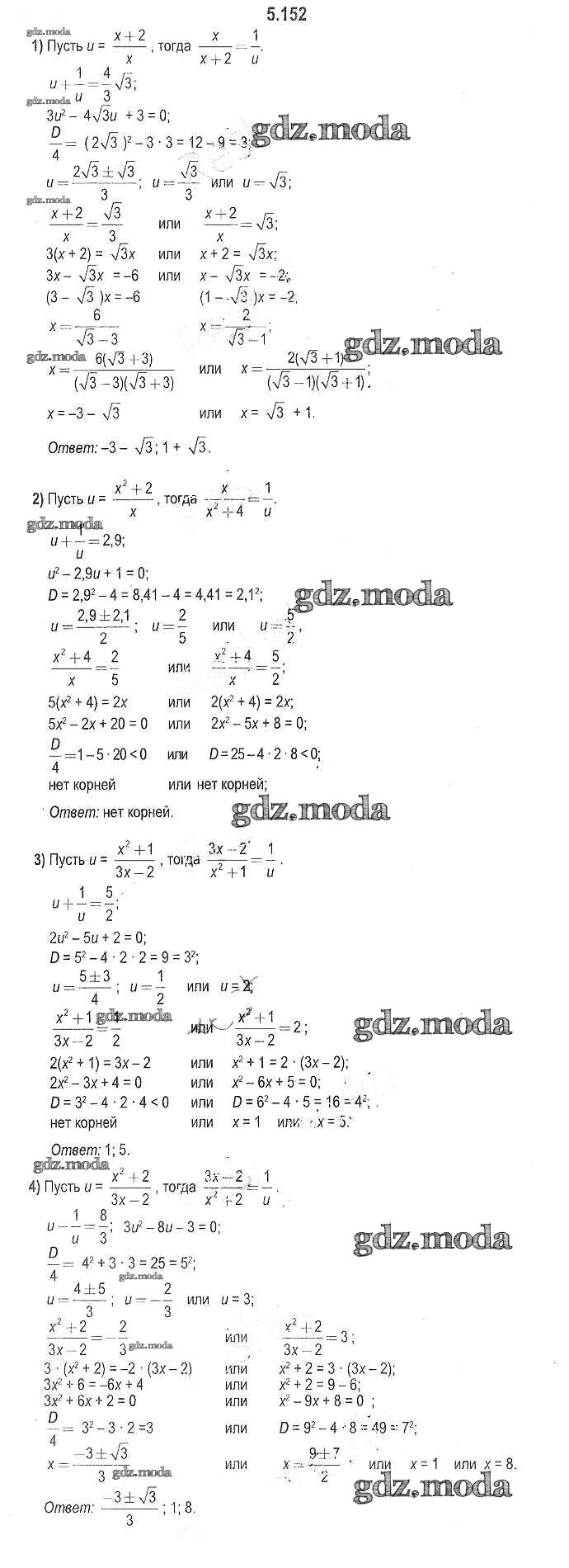 ОТВЕТ на задание № 5.152 Учебник по Алгебре 8 класс Кузнецова
